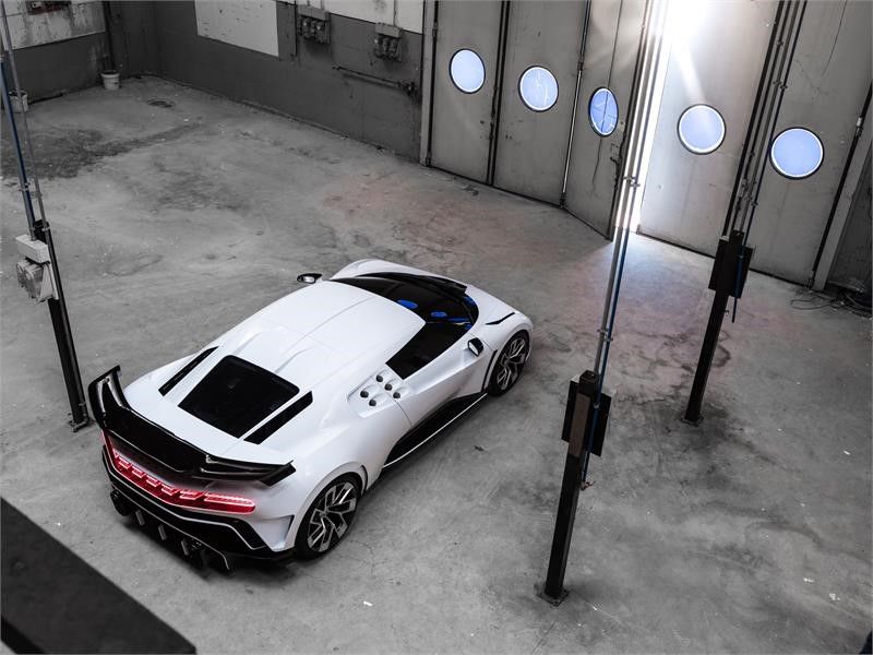 Z tyłu mamy dwie podwójne rury umieszczone pionowo po bokach stosunkowo małego dyfuzora i wielki podwójny pas świetlny. Na to wszystko nachodzi ogromny spojler z lotkami po bokach. Stylistyka jest naprawdę odważna i specyficzna, ale jak widać Bugatti wiedziało co robi, bo auto zostało już sprzedane i to we wszystkich 10 egzemplarzach.