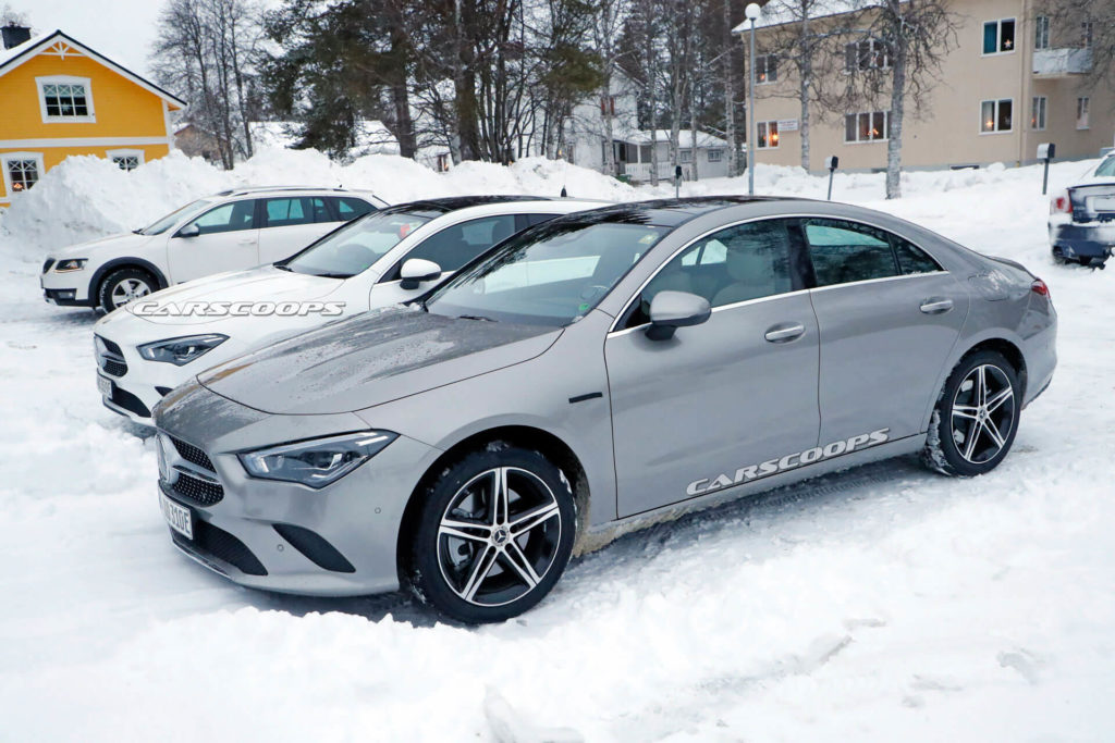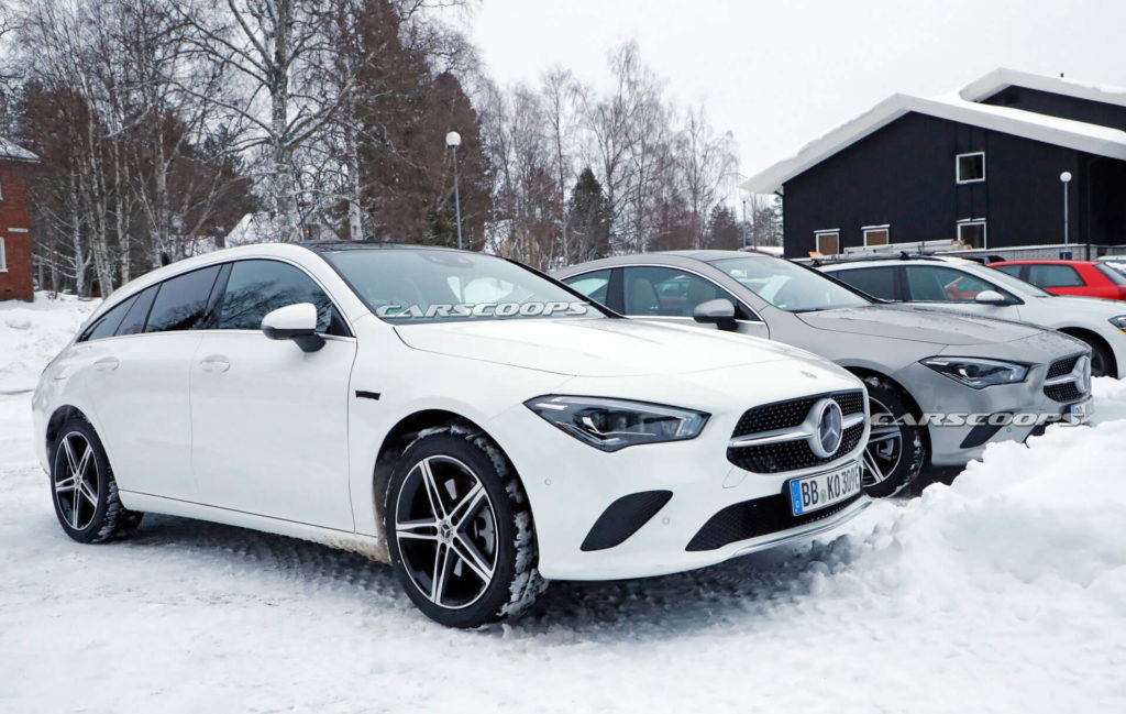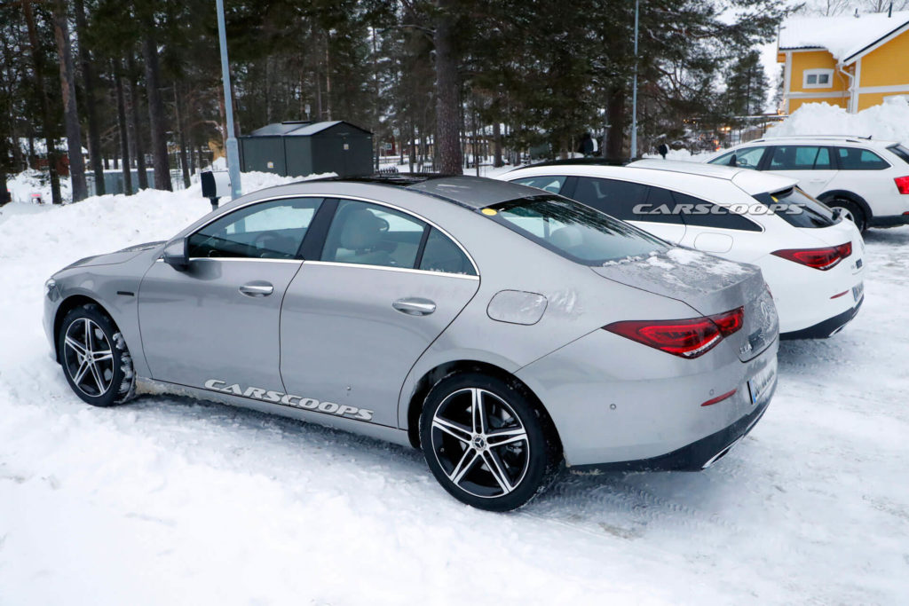 Dwa prototypy CLA – Coupe oraz Shooting Brake zostały zauważone w północnej Szwecji, jako, że nie miały na sobie żadnego kamuflażu można było je przeoczyć i uznać za zwykłe Mercedesy (o co nota bene Mercedesowi chodziło), lecz kilka szczegółów “zdradziło”, że to nie są zwykłe egzemplarze CLA. Można zauważyć port ładowania na prawym błotniku oraz oznaczenie 250e ukryte pod czarną taśmą, która jest na nie naklejona tak, aby było widać tylko napis CLA. Oprócz tego zakryto oznaczenia na nadkolach i nic więcej nie zdradza, że to nie zwykłe auta spalinowe, ale muły testowe nowych hybryd Mercedesa.