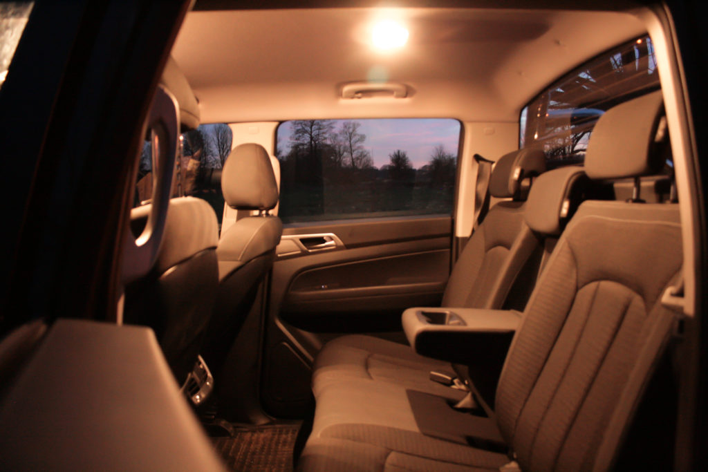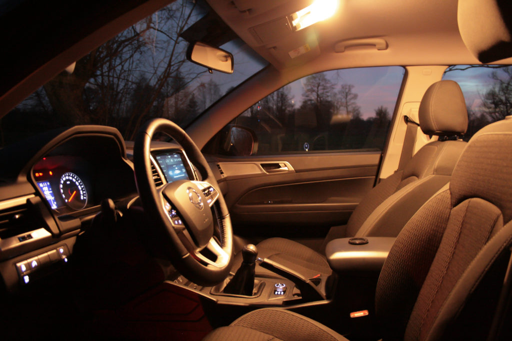Pomimo wyzwania jakie stawiają wymiary Musso i faktu, że jakby nie patrzeć – jest to pojazd użytkowy, zbudowany do przewożenia ciężkich gabarytów (do 930 kg, zakładając że nie przekraczamy dopuszczalnej masy całkowitej, a kierowca waży maksymalnie 100 kg, natomiast SsangYong chwali się również 3 tonami uciągu haka.), w środku jest bardzo komfortowo. Dopóki jeździmy wolno i spokojnie, można śmiało zapomnieć że siedzi się za kierownicą w teorii spartańskiego pick-upa. Poziom wykonania, spasowania elementów i jakość materiałów zdecydowanie przewyższyły moje oczekiwania. Pomimo, że w testowanym egzemplarzu było dużo plastiku (opcjonalnie może być np skórzany dół deski), nic nie wyglądało tanio ani niechlujnie. W SsangYongu każde tworzywo sztuczne wygląda jak skóra lub aluminium i jest naprawdę przyjemne w dotyku. Nic nie trzeszczy, nie przemieszcza się. Szarpnięcie za uchwyt w drzwiach nie powoduje żadnego skrzypienia czy innych nieprzyjemnych dźwięków. Siedząc z przodu czułem się jak w zwyczajnym, komfortowym SUVie i to takim za o wiele większe pieniądze.
