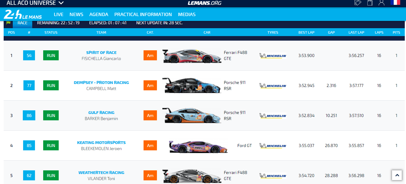 00:35 – Ponad 13 000 wyprzedzeń podczas tego Le Mans. Czyżby ponad 30 tysięcy na koniec?