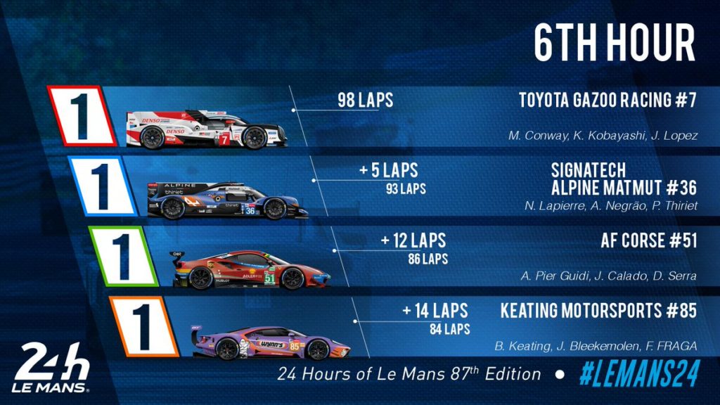 21:56 – Zbliżamy się do 7 godziny Le Mans i na szczęście tylko jeden samochód odpadł jak do tej pory