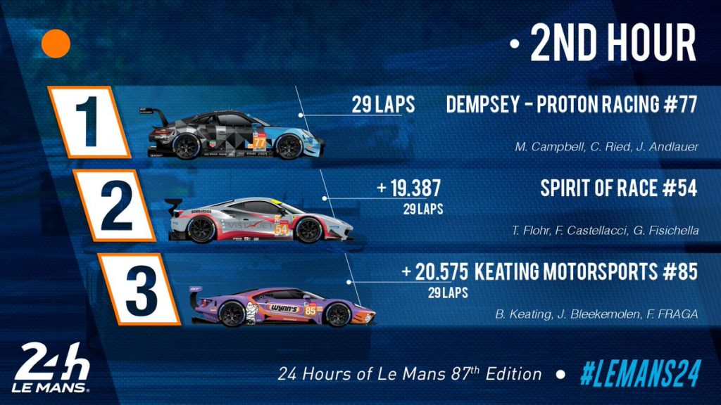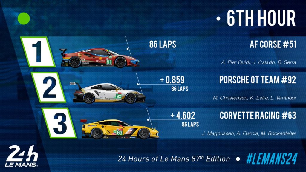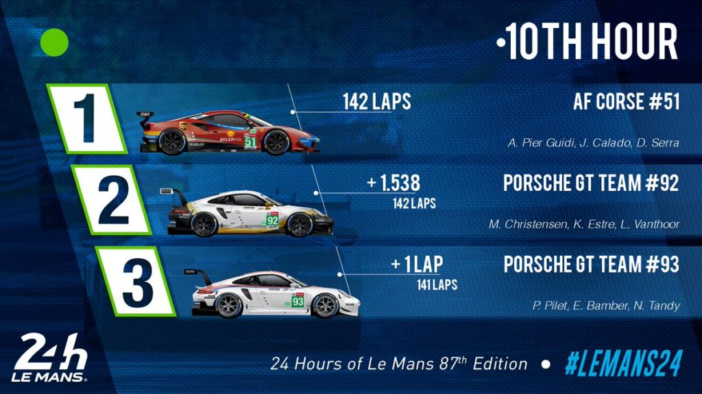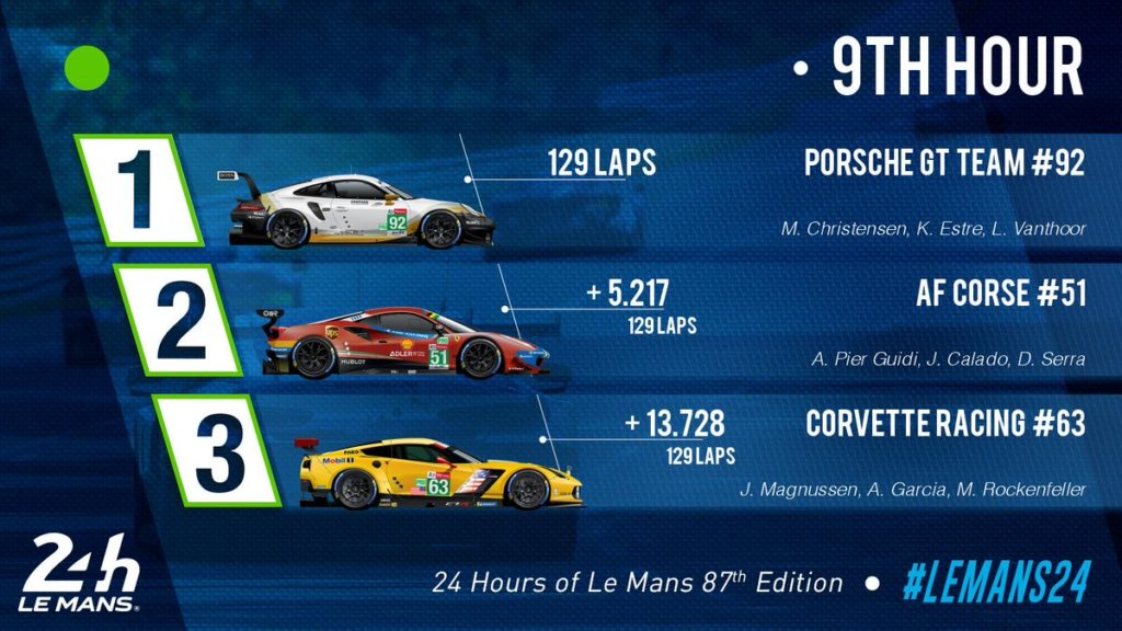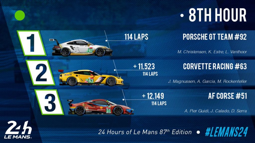 20:24 – Wznowienie wyścigu spowodowało, że w GTE Pro różnica 10. miejsca do lidera wynosi zaledwie 12 sekund i rywalizacja nabiera tempa
