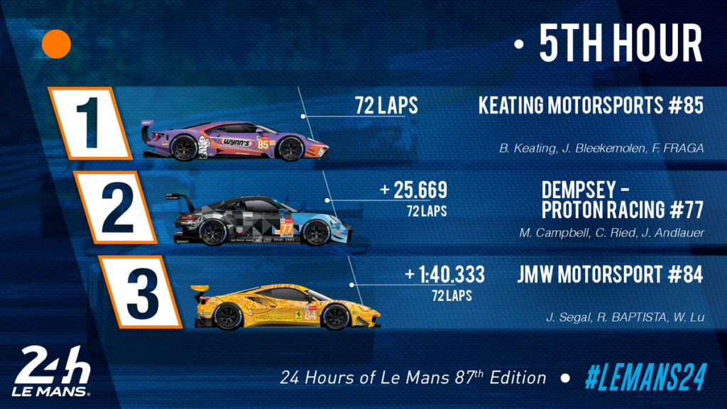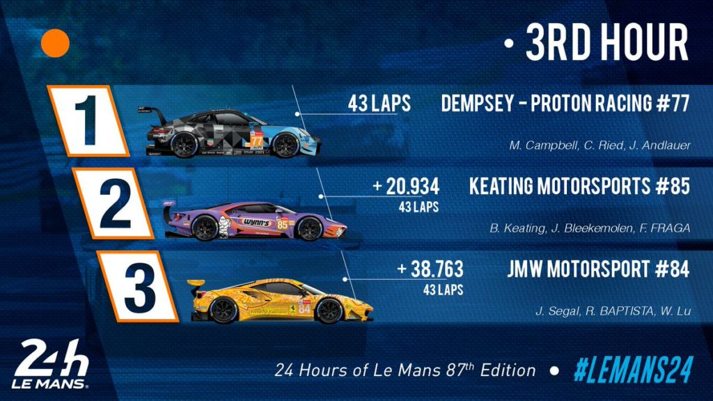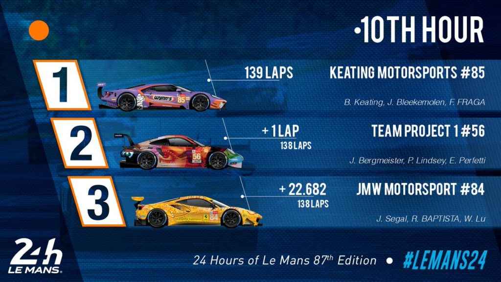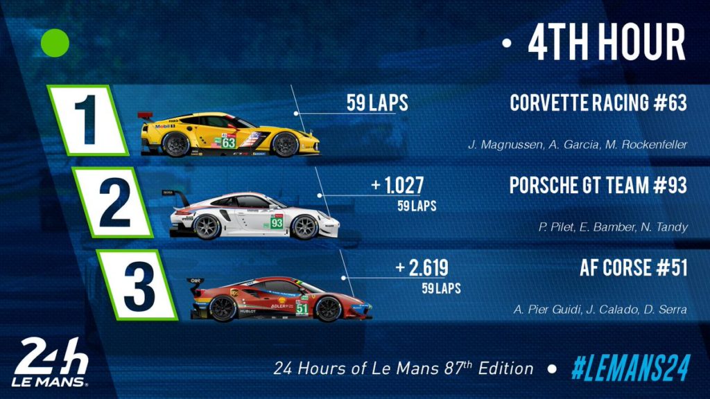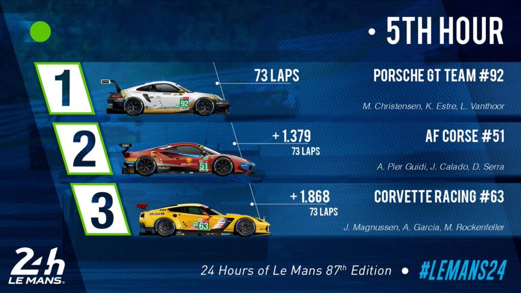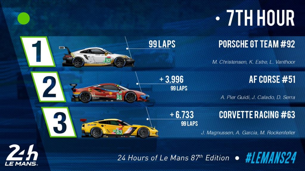 20:24 – Wznowienie wyścigu spowodowało, że w GTE Pro różnica 10. miejsca do lidera wynosi zaledwie 12 sekund i rywalizacja nabiera tempa