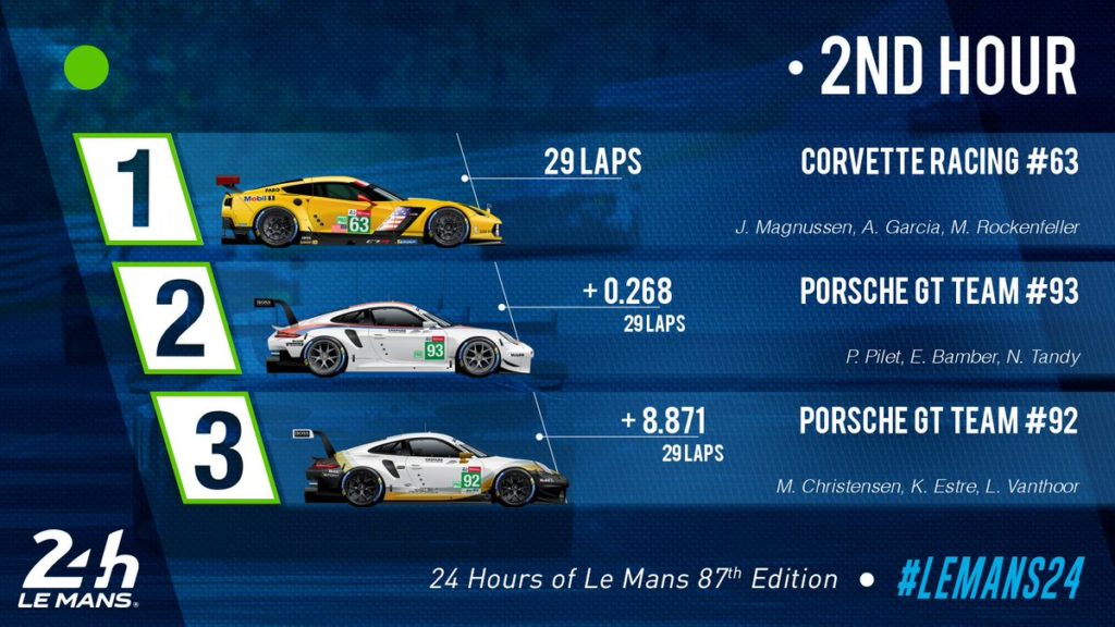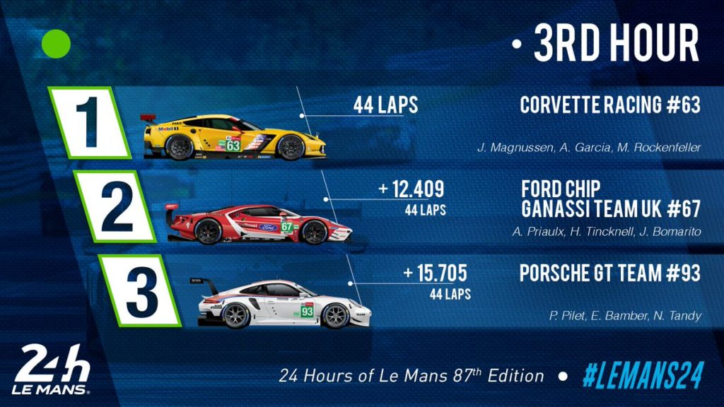 15:17 – Corvette #63 wyrobiła już sobie 3 sekundy przewagi nad Astonem będącym na drugim miejscu w klasie GTE Pro