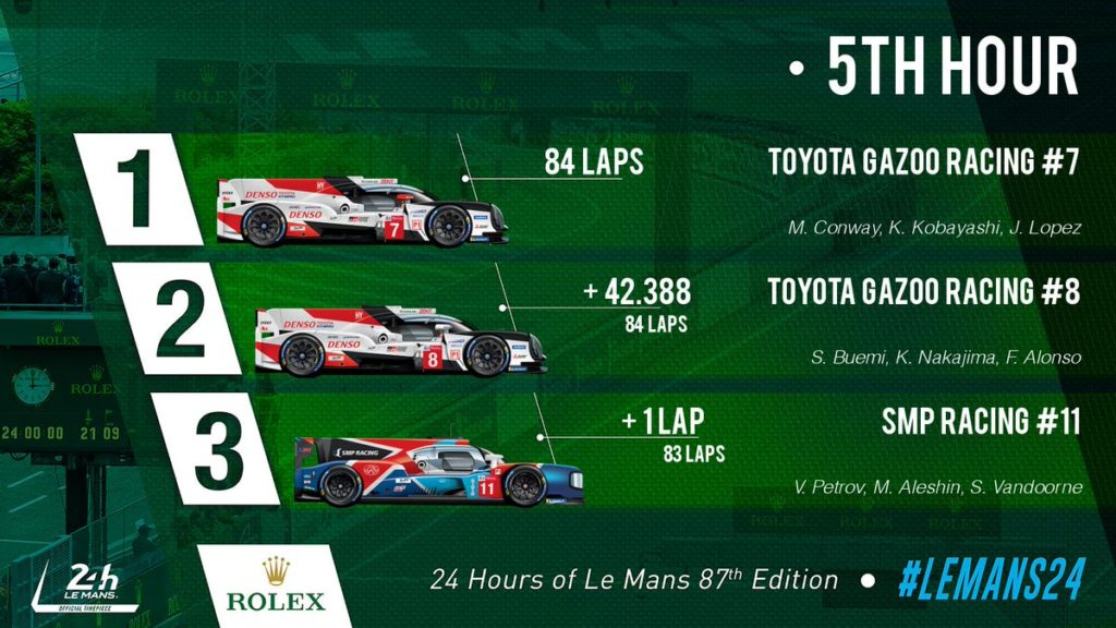 23:39 – Toyota #7 prowadzi sekundą przewagi nad #8
