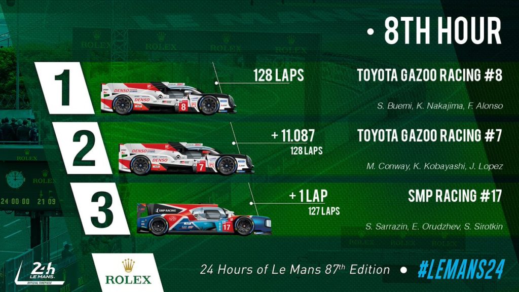 17:29 – Fernando Alonso wsiada do Toyoty #8! Zaczyna się walka między Toyotami
