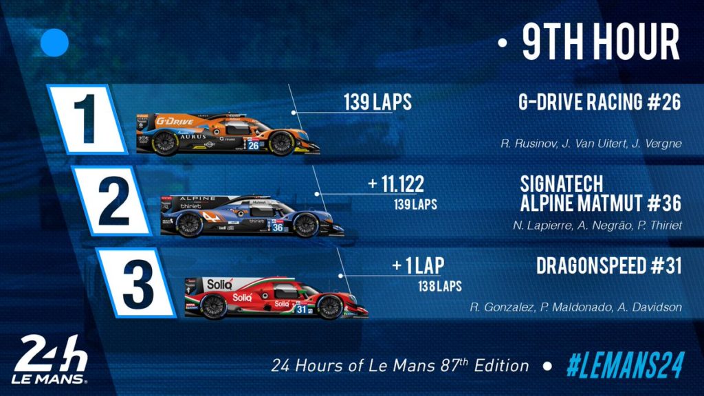 21:57 – Ponownie zmiana na prowadzeniu LMP2! Alpine spada na 2 miejsce, a prowadzenie obejmuje G-Drive
