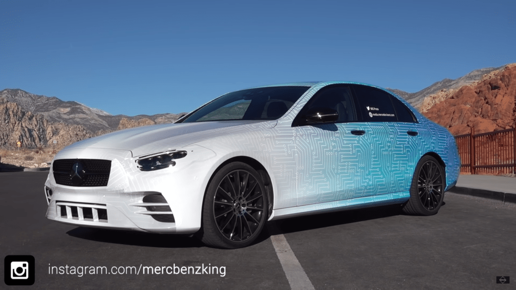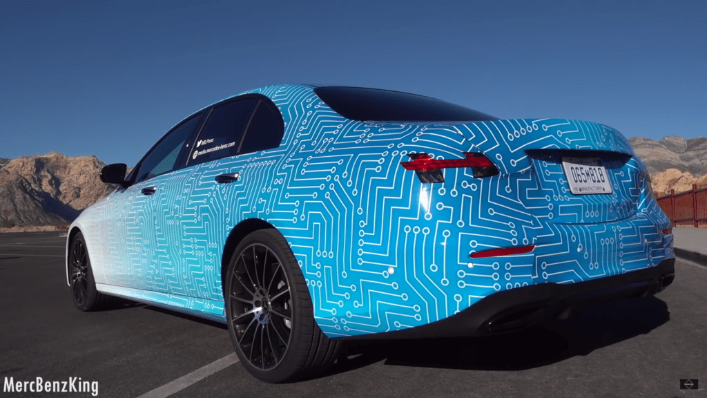 Do całej sytuacji doszło przy okazji jazdy YouTubera MercBenzKing nowym Mercedesem klasy E wraz z pracownikiem producenta. W jej trakcie, pracownik zmienił tryb jazdy na Eco i w tym momencie pojawia się na ekranie wizualizacja samochodu, przygotowana przez Mercedesa. Widać wszystko dokładnie, nie ma żadnego kamuflażu i możemy śmiało ocenić wygląd nowego Mercedesa klasy E. Zmienił się nieco grill, nie ma znanej Panamericana (chociaż nie wiadomo czy nie będzie i tak dostępna jako opcja), przeprojektowano nieco przednie światła na wzór tych z nowego CLS’a i to w zasadzie tyle ze zmian. W środku modyfikacje dotyczą odświeżonego wyglądu kierownicy, nowego systemu MBUX i kilku kosmetycznych zmian w układzie przycisków oraz zarządzaniu danymi samochodu. Jeśli ktoś liczył na rewolucję to nie tutaj, Mercedes robi ewolucję z obecnej klasy E.