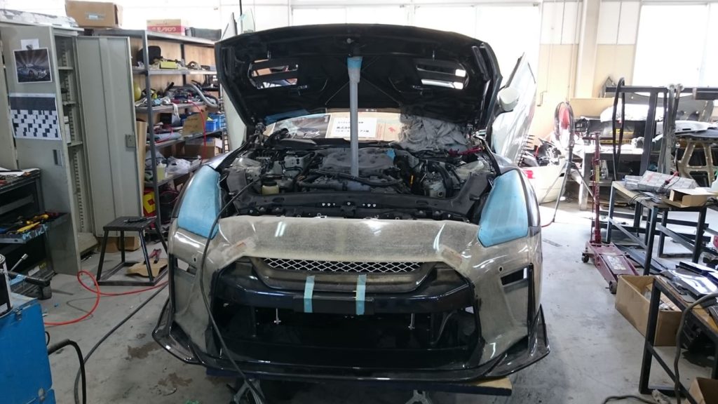 Patrząc z przodu samochód wygląda jak każdy inny zmodyfikowany GT-R z specjalnym zderzakiem i zmienionym grillem, jednakże jedna rzecz może rzucić się w oczy. Samochód jest nienaturalnie wąski jak na Nissana GT-R. Łatwo porównać go z GT-R’em od Liberty Walk, który został ostatnio pokazany i tam otrzymaliśmy po modyfikacjach bardzo szeroki samochód. Jest tak ponieważ bazą nie jest Nissan GT-R, a Nissan 350Z sprzedawany w Japonii pod nazwą Fairlady Z. Dlaczego wybrano taką bazę? Usunięcie dachu z prawdziwego GT-R’a byłoby możliwe, jednakże podniosłoby to znacznie koszta i zajęło by znacznie więcej czasu niż modyfikacja Nissana 350Z. Jeśli można było uzyskać podobny efekt mniejszym znacznie nakładem finansowym to czemu tego nie zrobić?