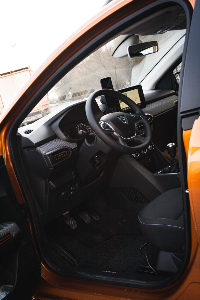 Drzwi mają teraz cienkie obramowania szyb, na miarę naszych czasów, porządne, eleganckie, współczesne klamki, lusterka bez plastikowych udziwnień, stylowe lampy tylne, oczywiście z LEDowymi paskami, jest po prostu świetnie. Linia boczna zyskała delikatne przetłoczenia, które poprawiają nawet podświadomy odbiór wizualny tego auta. Z tyłu przypomina trochę obecnego Volkswagena Polo, co w zasadzie jest rzeczą dobrą. Sandero przestało być reliktem przeszłości, a jednocześnie nie przestało być najtańszym sposobem na poruszanie się nowym autem z najpotrzebniejszym wyposażeniem. Jak już o wyposażeniu mowa – jak jest w środku?